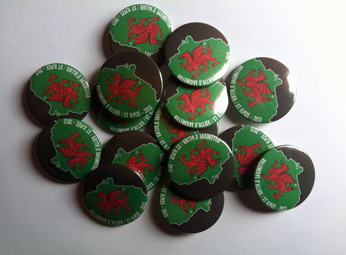 Badge Villeneuve d’Allier / Gallois Divers Fabrication badges pour l’échange entre Villeneuve d’Allier et Tonyrefail (Pays de Galles).