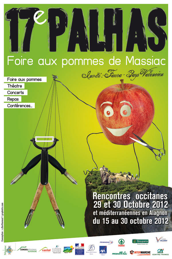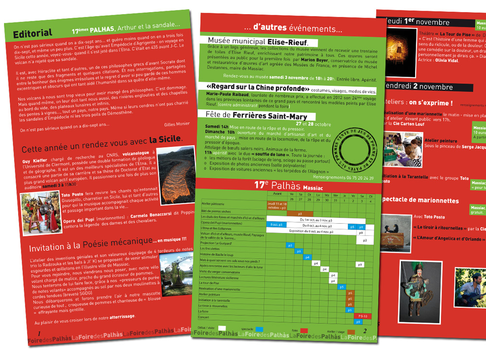 Foire des Palhàs A imprimer Rencontres occitanes et méditerrannéenes à Massiac octobre/novembre 2012. Rôle de graphetic : ♦ Création affiche ♦ Conception livret 12p